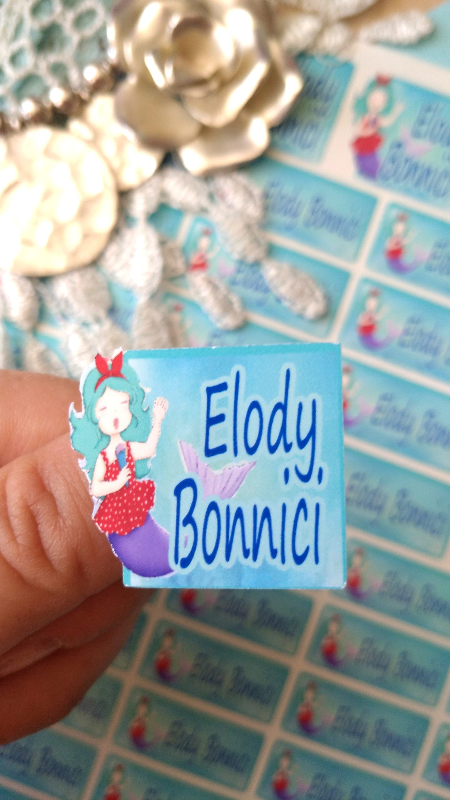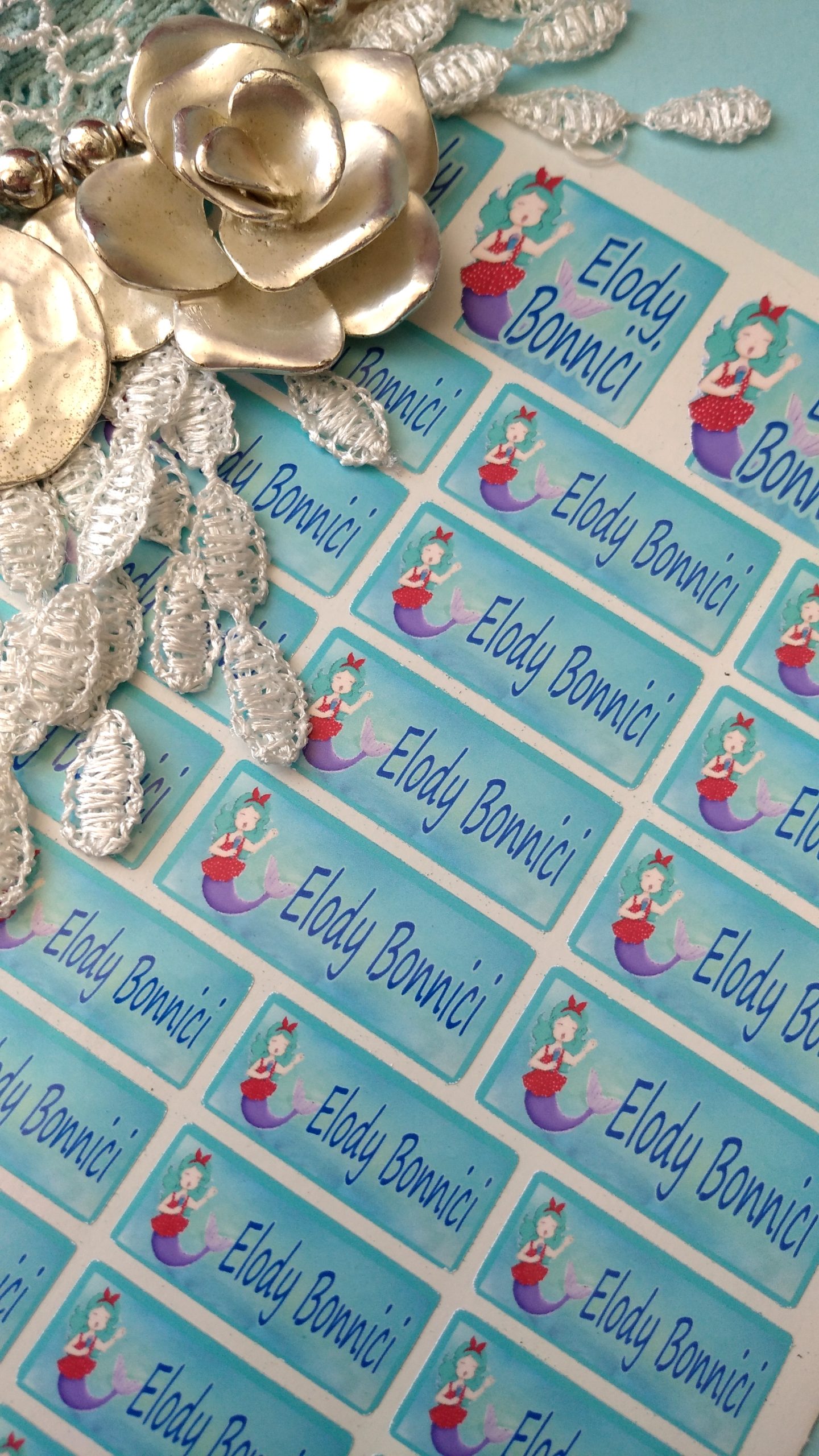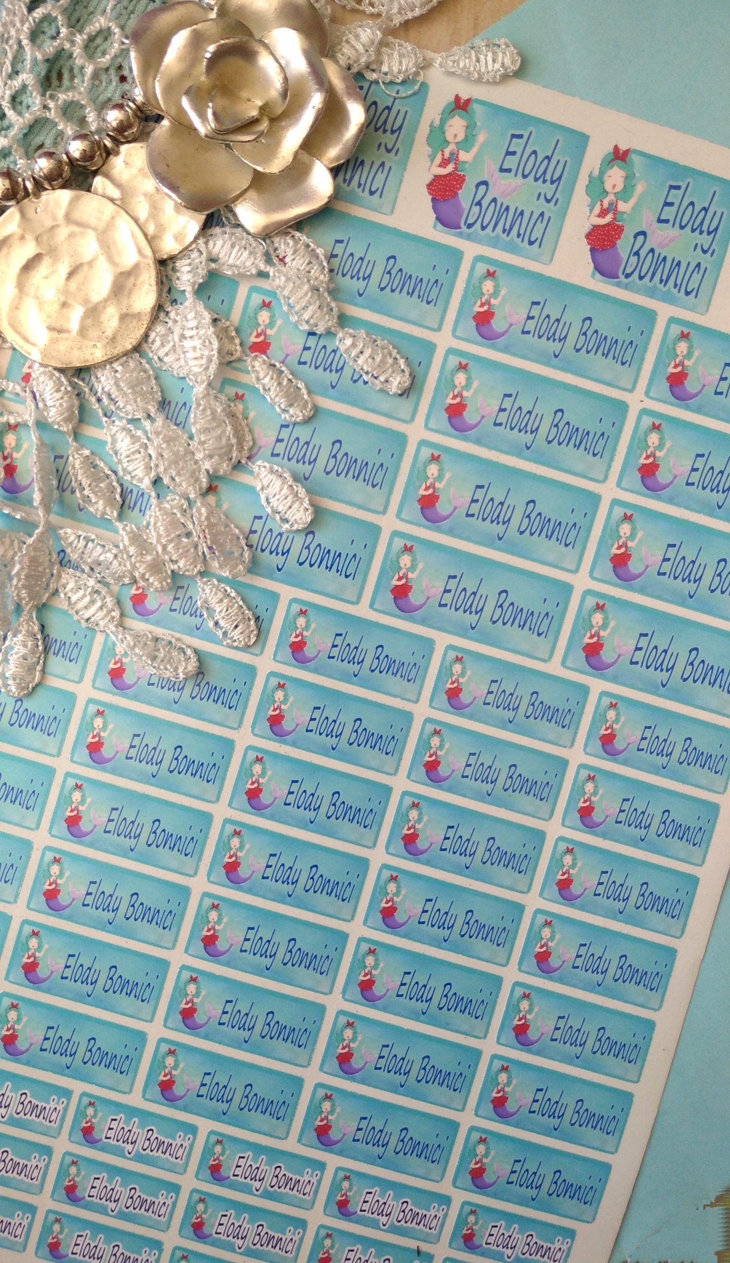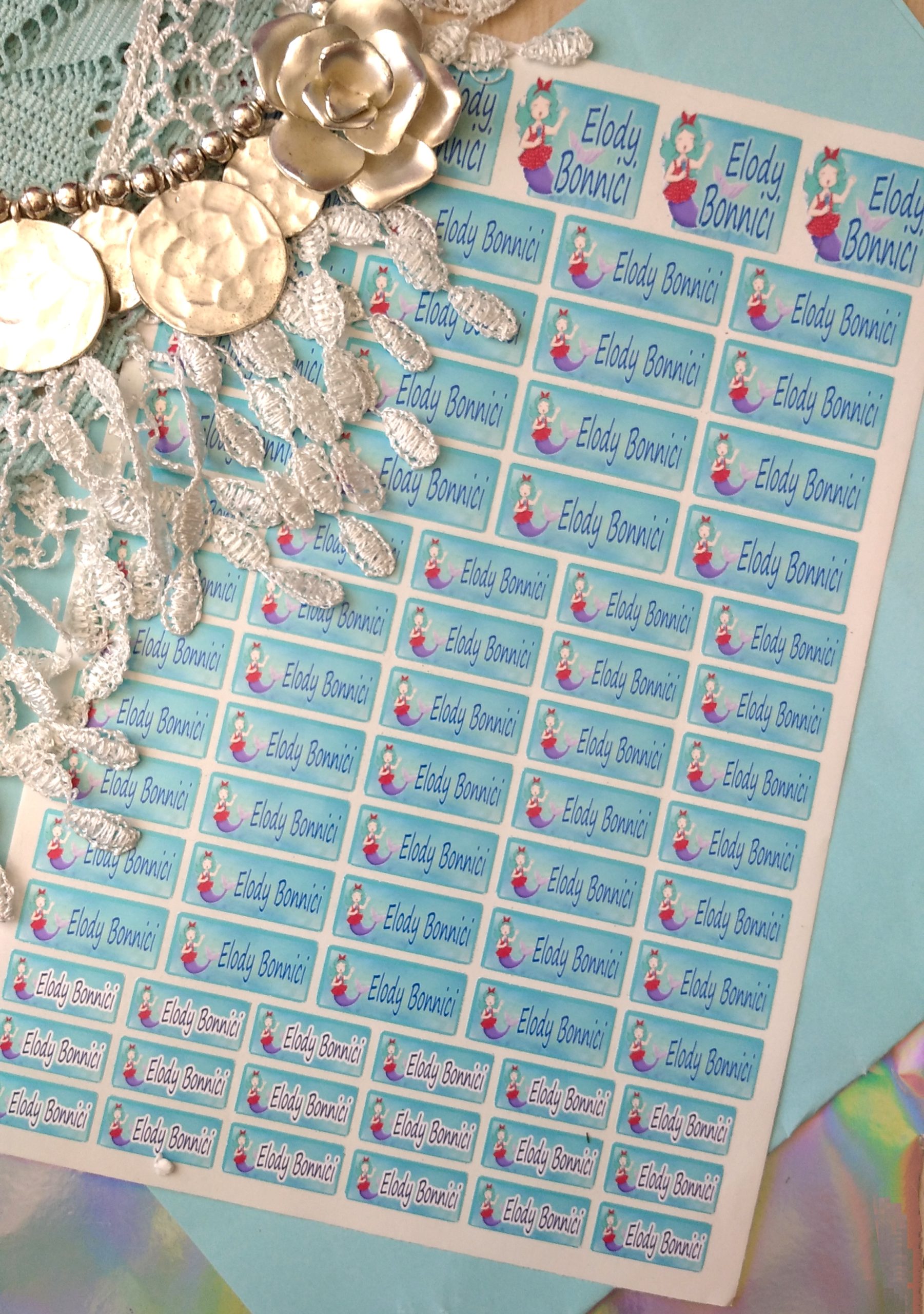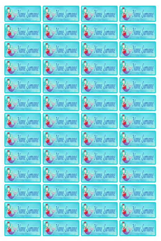 Singing Mermaid Name Label Stickers: